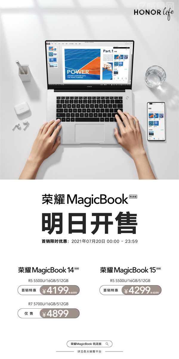 7月14日,荣耀正式发布MagicBook系列新成员——MagicBook14/15 2021款锐龙版笔记本。