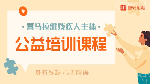 2021年4月23日世界读书日期间,喜马拉雅上线《残疾人主播公益培训课程》,面向残疾人群体提供主播公益培训内容,让更多想做主播的残疾人更方便的获取线上培训资源,助力残疾人群体用声音实现个人价值和社会价值。喜马拉雅也在积极联合各地残联推动残疾人主播培训,不断升级残疾人赋能计划。如2021年5月,喜马拉雅联合广东残联在广州开展残疾人主播培训。