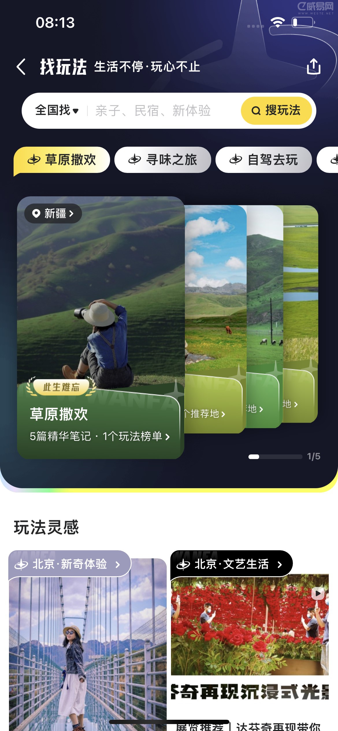 此外,小编还发现了一个“找玩法”的模块,在这里你可以根据玩法地图、玩法攻略规划自己的旅途新玩法,让旅途充满乐趣。