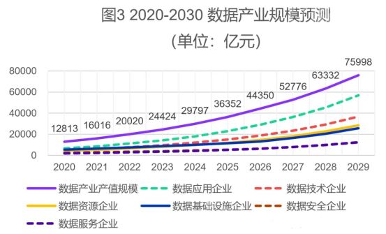 图谱显示,我国数据产业在近年来实现了快速增长,2023年产业规模已达2万亿元,2020年至2023年间年均增长率高达25%。展望未来,预计2024年至2030年间,我国数据产业将保持20%以上的年均增长率,到2030年,产业规模有望达到7.5万亿元。这一系列亮眼的数据,充分展示了我国数据产业蓬勃发展的良好态势。