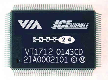 2002年9月23日,创新发布Sound Blaster Audigy2,拥有支持Dolby Digital EX、D-Audio、THX认证、24bit、对6.1系统提供支持等新特征,而此时创新不再在运算能力上大做文章,Audigy2的推出让Live!顺利的降档到中端,Audigy2成为新的高档产品代言人。但创新的日子并没有从此安稳,2000年的时候,VIA曾经悄悄收购了一家专业级音频芯片生产设计商——IC Ensemble。2002年,突然发布2款音频控制芯片:Envy24以及Envy24HT,有着不少令人向往的专业色彩,而站在VIA阵营的竟然差不多是清一色的专业厂家,毫不忌讳的开始与创新争夺民用高端声卡的市场。而中端也逐渐兴起一个基于水晶公司CS系列芯片的声卡阵营,与Live!直接针锋相对。主板厂家也没有闲着,市场上不可思议的出现了集成Envy24低端型号芯片的主板,市场目标很明显,更有甚者,集成真空管功放的主板也“轰轰烈烈”的上市。