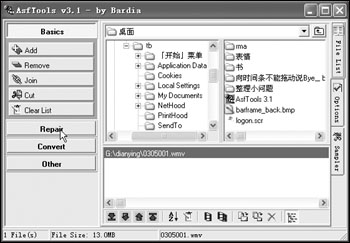修复ASF及WMV格式文件的工具还有“微风WMV、ASF流媒体工具包”等工具软件,软件使用非常简单,相信您会很快掌握的。