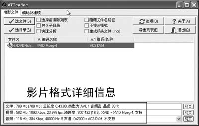这里下载一个免费的检测软件Avicodec。它能正确检测出影片的压缩格式以及目前电脑已经安装好的影音编码器。