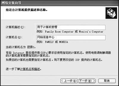 5. 在出现的“计算机描述”及“计算机名称”框中填写该计算机名称及描述(如图),然后再选择[下一步]。