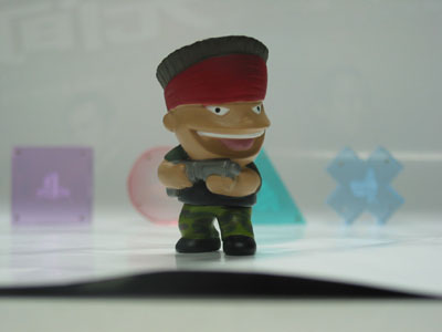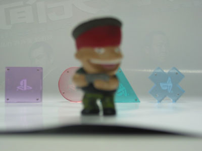 如图就是一个很好得很例子。上图的对焦点是CS小人后面的背景,所以背景画面看起来相当的清晰,CS小人就变得十分模糊。下图对焦点在CS小人的身上,就是一张成功的照片了。