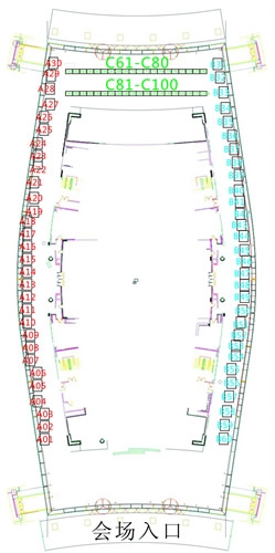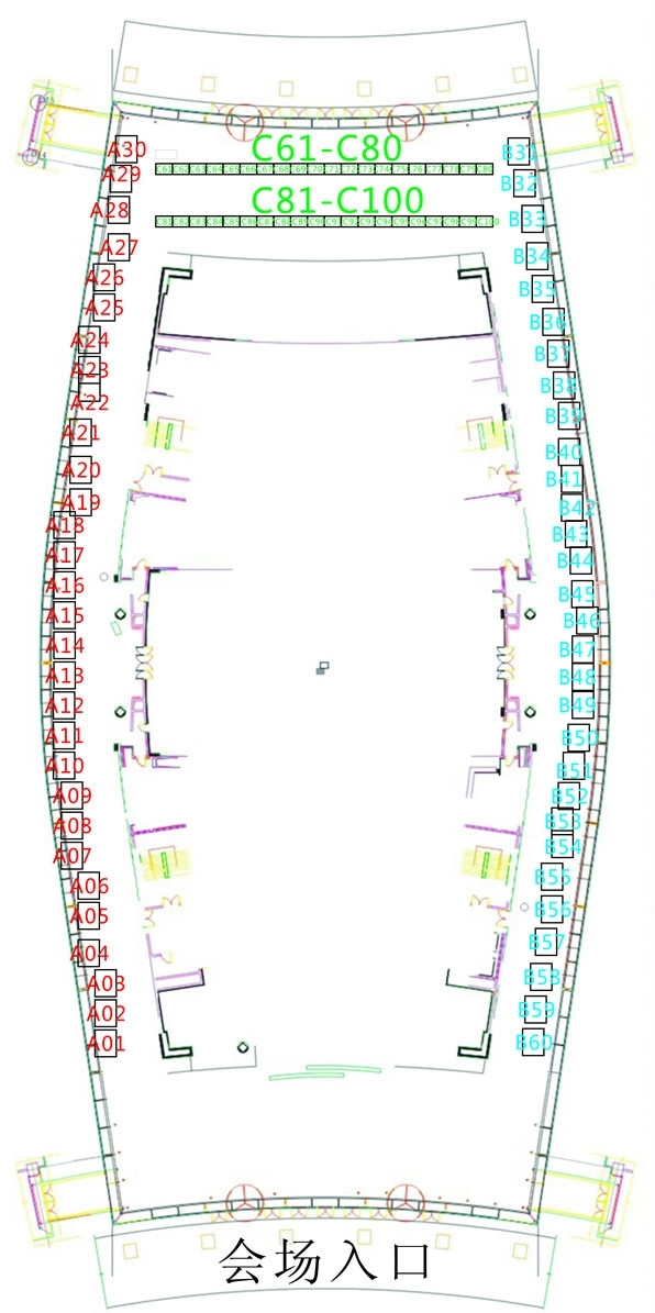 会场入口进入,自左顺时针绕凹型展区进行布展,其中A区由A01-A30,C区则由C61-C100,B区由B31-B60止,依次顺序布展,参展单位可凭借申请参展时间优先选择未定展位,申请完即止。