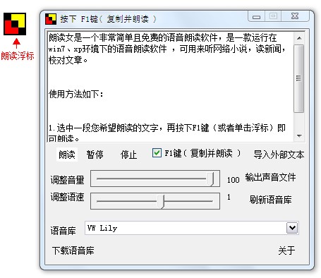 1.选中一段您希望朗读的文字,再按下F1键(或者单击浮标)即可朗读。