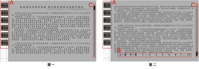如图二,当滚动条拉到最下面时,出现了“分页”条,这时按左右键,焦点应该顺序的在“A”、“B”、“C”三个区域间移动。