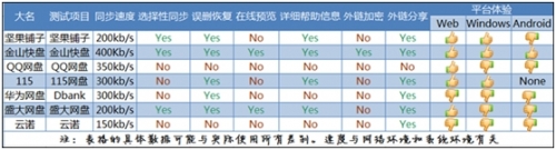 而今天参加对比的其他网盘,我只能说:你们还有没有用心。QQ网盘不发力,115同步盘对比自家的115网盘显得太逊色了,华为网盘有弹出广告让我很厌烦,盛大网盘没有特色,留不住用户。云诺这个团队还很年轻,虽然有太多的不足,但是希望仍是很大。