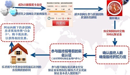 据悉,“狂拍团”根据参团人数设定购房价格阶梯,越多人参团优惠力度越大,最后摇奖产生1至3名幸运购房者,以优惠价格购得目标房产。接下来该网站工作人员则向其余的参团购房者兜售“白金卡”,购卡抵房款获得相应优惠。由此看来“狂拍团”、“伪电商”不过是揽客的噱头,其最终目的仍是向更多的购房者售卖“白金卡”,“只不过是换汤不换药罢了”。