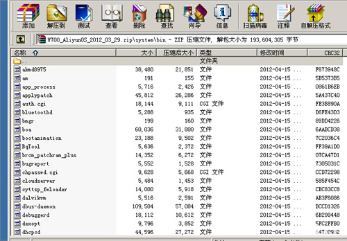 阿里云OS到底是不是Android以外的东西,笔者通过技术手段对其进行一些分析。天语W700是一款使用了“阿里云OS操作系统”的手机,笔者找到一个天语W700手机的阿里云OS的刷机包。打开粗粗看一下,和Android的刷机包没两样。里面的应用全部是apk,这意味着它们都是以Dalvik可执行文件的形式存在的。