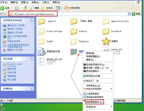 第二步:找到自己的桌面文件夹,系统默认:C:\Documents and Settings\Administrator,右击“桌面”文件夹(采用同样的方法您可以实时同步您电脑的任意文件夹):