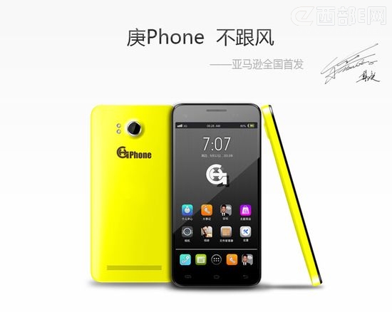 启东优思与韩庚发布的“庚phone”。1.5HGz四核、2G RAM、32G ROM、1300万+500万像素摄像头、5.0英寸屏幕、内置韩庚专属App。售价2780元。