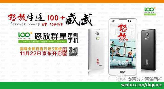 百分之百与汪峰、水木年华等众星推出的“怒放”。5英寸屏幕、骁龙四核、800万+200万像素摄像头、双模双卡双待、搭载百度云炫5 ROM。售价798元。