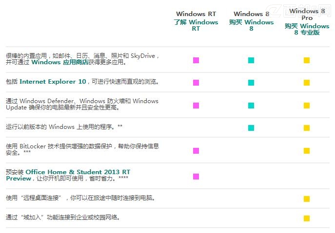 相比于之前繁多的版本,微软在Windows 8上做出了一定的精简,仅把系统版本分为: