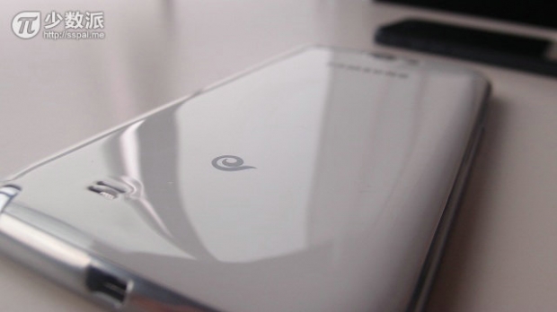 Note 2 后盖的使用材质是聚碳酸脂,非常纤薄、柔软。表面采用了Hyperglaze涂层技术,光滑莹润,易留指纹,但会比其他材质的塑料好不少。