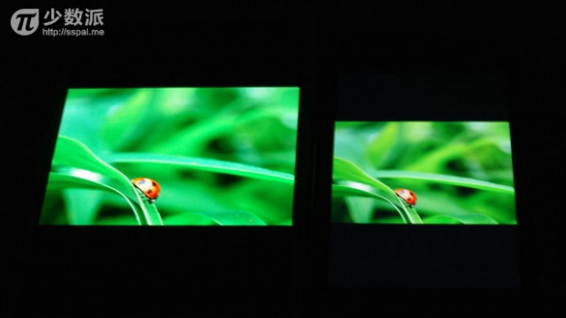 由于 iPhone 5 采用了in-cell的技术,屏幕没有了触摸控制层,每个像素点都同时承担了显示和触控的作用,厚度上减少30%,屏幕实际上看去比 Note 2 要晶莹剔透。