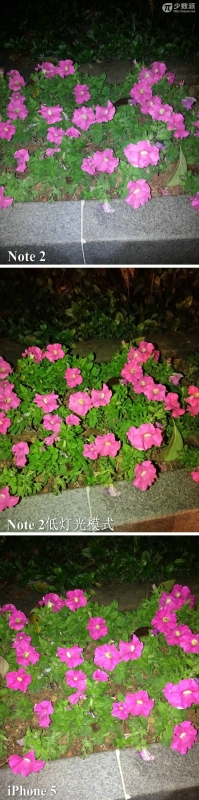 从下面图片可以看出,“低灯光”下, Note 2 会把照片处理得鲜艳一些,但却牺牲了照片的细节。