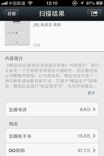 如果说微信4.5版是从一无所有到燃烧一切,那么即将上线的微信5.0版则是将这把火从0和1的虚拟世界直接烧到了现实世界,通过扫一扫这个入口,微信将能够横“扫”一切!