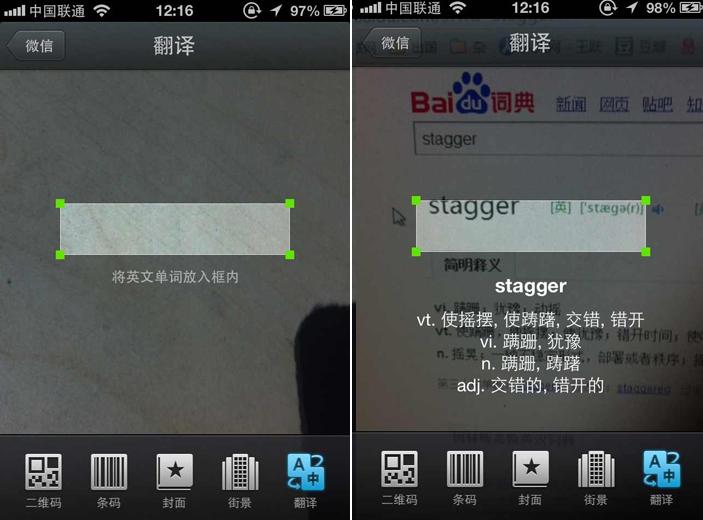 用户购买商品的时候可以拿出微信扫描条码或者包装比价;看到一本书或者一张CD的时候扫描下在线购买;旅游的时候到某个风景点拿出微信扫描实景就有语音、文字、视频的导游……