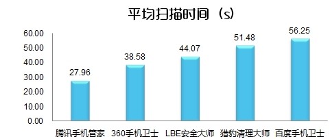 需要指出的是,360手机卫士的扫描时间包括了对内存、缓存、安装包、卸载残留、大文件的扫描,而腾讯手机管家没有扫描内存、卸载残留和大文件,并且其扫描的缓存也较少。因此,在扫描相同大小缓存的情况下,360手机卫士扫描使用的时间最少。