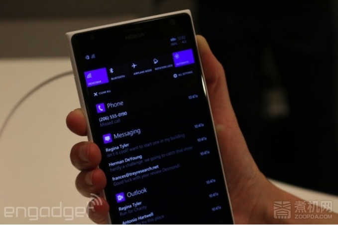 对于 WP 系统而言,通知中心和活动中心的快捷界面在 WP8.1 中刚刚加入,也是通过自顶部向下滑动的方式获得的。不得不说这一功能来的有点晚,但总算是来了。