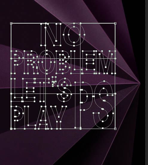 文字部分制作相对要繁琐一点,先把文字转为形状,然后简单的变形得到初步透视效果,再把形状转为路径,按住折叠面对文字局部进行路径变换,同时给不同折叠面的文字加上不同的颜色做出透视效果。