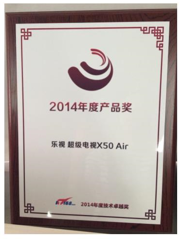 IT168给出的获奖理由为:乐视超级电视X50 Air之所以优质,主要依靠“平台+内容+终端+应用”的乐视生态。垂直整合的乐视,随着Le4K生态的发布和首个4K终端X50 Air的推出,在智能电视领域将一骑绝尘。