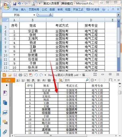 (6)打开原excel文件和转换后的pdf文件,对比文件转换效果。