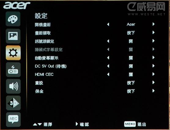 ▲选单第三大项则是屏幕显示相关的设定,可启动 HDMI CEC,让 V7500 和其他透过 HDMI 连接的器材进行同步电源启闭控制。