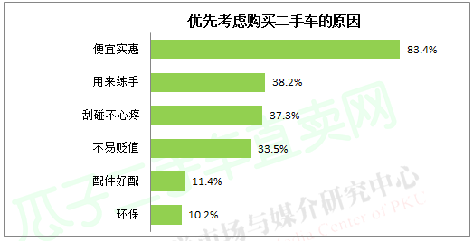 新车与二手车,各有千秋。对于表示优先考虑购买二手车的车主来说,价格便宜实惠是促使他们选择二手车最重要的原因,认同者比例高达83.4%。汽车毕竟属于高端消费品,对普通老百姓来说价位还是高了一些,因而低价格成为了二手车最大的卖点。此外,新手上路刮碰难免,而二手车价格实惠有个小擦小碰的也不心疼(37.3%)),部分车主们会选择拿二手车练手用以过渡(38.2%)。