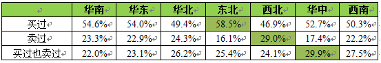 报告显示,不同地域对二手车买卖的偏好也不尽相同。在这七个地区,东北地区消费者最爱买二手车,购车人群比例高达58.5%;而西北地区恰恰相反,西北人卖过二手车的人群达29.0%,高于其他地区;华中地区二手车买卖最火爆,既买过也卖过的人群比例高于其他地区,为29.9%。从买方所在的城市分布看,大连买方觉得有压力的比例最高,达20%;而沈阳买方感觉紧张的比例最高。