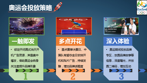 此外,针对不同客户,喂呦科技还会制定更多精准致效的投放策略,陈总将其总结为:一触即发、多点开花、深入体验,简洁精炼的概述了喂呦奥运年的大屏营销战略。