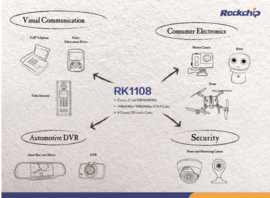 同样,10月瑞芯微在香港展发布的“智慧视觉开发平台——RK1108,内嵌DSP,具有智能图像处理等关键技术,在嵌入式系统中实现了高能效智能视觉和图像感知的革命性进化。具备强大的开放性和可编程。通过该芯片平台打通物联网,可广泛应用于汽车、安防监控、家用辅助机器人、运动相机、无人机等领域。