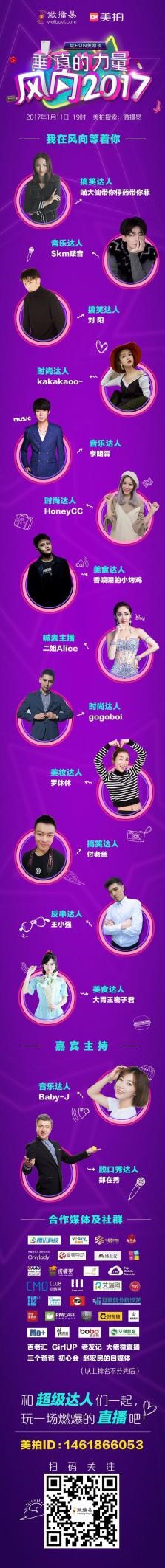 这场业界大佬、娱乐明星、广告大咖纷纷关注送祝福的微播易“绽FUN美易夜”线上直播峰会就将于后天(1月11日)晚上正式在美拍平台(ID:1461866053)开播了!