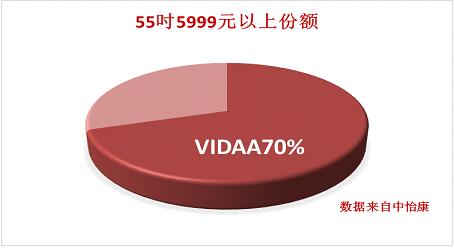 供给侧改革大背景下,海信电视成功布局,重推VIDAA互联网电视品牌,牢牢占据线上55寸5999元以上市场超过70%的市场份额。以12月份为例,品牌指数达到116,海信线上平均客单价比市场整体高出了16%。