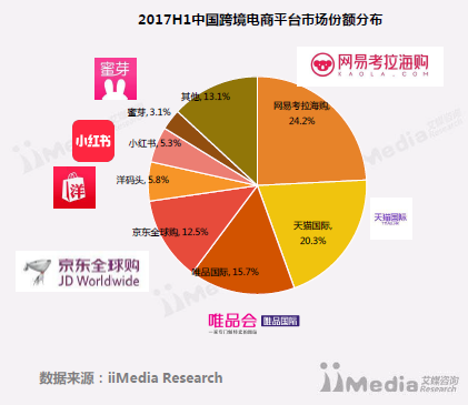 (图:艾媒咨询《2017H1中国跨境电商平台市场份额分布》)