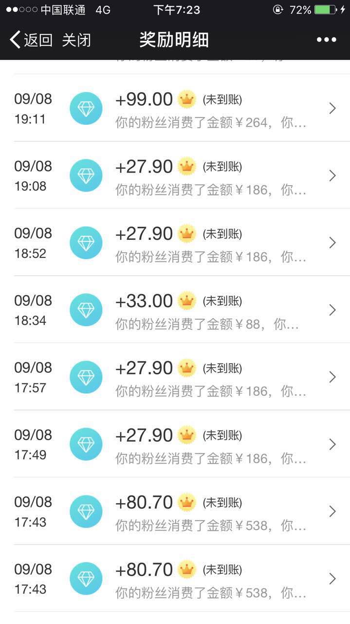 作为我们采访的第一个问题,社交电商究竟能多赚钱毫无疑问是所有人关心的问题。多妈(网易推手群昵称)直接晒出了她在网易推手半个月的收益奖励清单。“我是从8月份加入到网易推手的 ,就是因为当时的“超级返”活动,一款毛毛虫的童鞋卖的十分好,佣金也很高,能有20%多,后来就慢慢花更多心思在网易推手上,现在半个多月时间,收益已经超过2万了。”