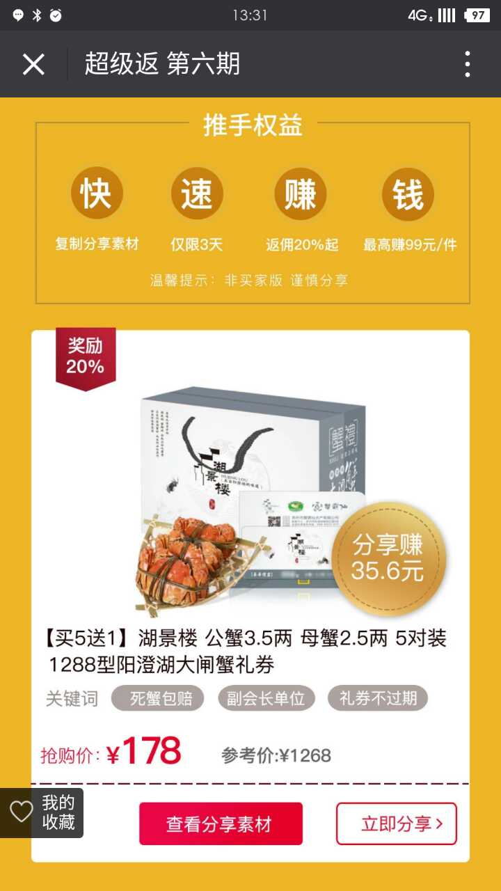 (图3:9月19日网易推手“超级返”活动热销商品——大闸蟹 )