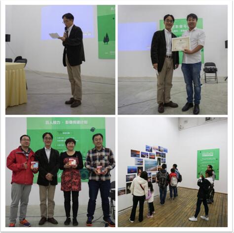 右上:兑现我们活动之初的诺言,收集影友片子,每过100张通过绿色基金会捐赠1棵树,现场献上证书。