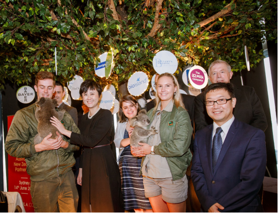 (澳贸委国际业务执行总监Michael Clifton在网易考拉举办的澳新招商会现场的介绍,网易考拉是2016年进口澳洲商品进口额领先的跨境电商。图片为网易考拉CEO张蕾在澳新招商会现场与澳大利亚各大知名品牌的合影)