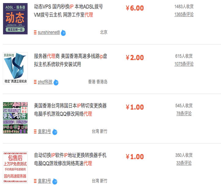 某宝上也有大量代理IP出售,价格低廉,甚至还提供包月的服务。当然自己写一些爬虫去收集代理IP也行,更牛的是掌握一些肉鸡就更方便了。用不同的IP登录不同的帐号是一种比较好的隐藏自己行踪的方法,通常很多产品都会对IP做高频限制(同IP下参与用户数过多)。
