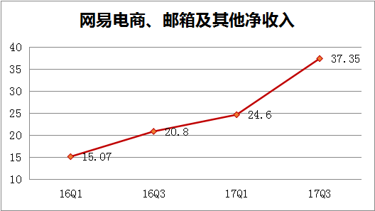 (从2016年Q1至2017年Q3,网易集团的电商、邮箱及其他业务净收入持续上涨。)