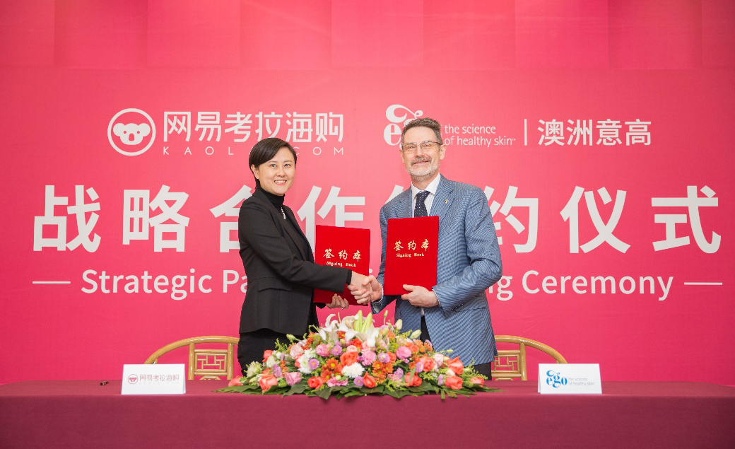 (网易考拉海购CEO张蕾和澳洲Ego CEO Alan Oppenheim签署战略合作协议。)