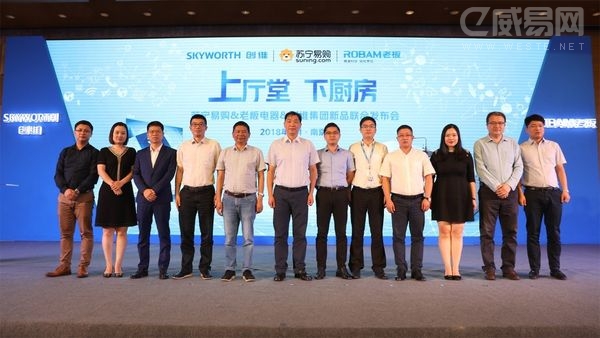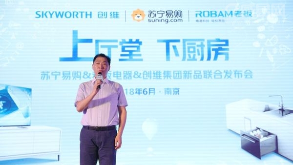 6月13日,苏宁南京总部,苏宁联合老板、创维召开的“上厅堂,下厨房”新品联合发布会正式拉开帷幕。苏宁零售集团副总裁范志军、杭州老板电器股份有限公司副总裁陈伟、创维集团彩电事业本部国内营销总部总经理谢思泉、奥维云网(AVC)副总裁郭德君等出席发布会。