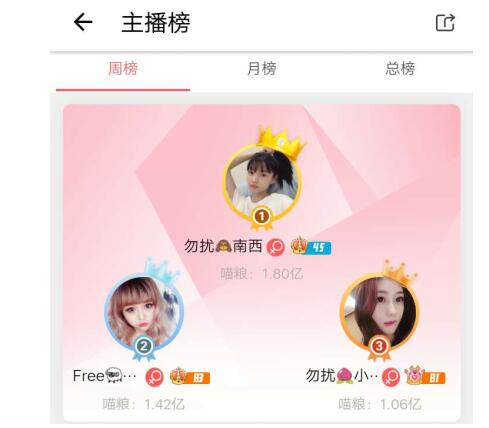 以上就是本周榜单了,小伙伴们如果想了解榜单更多详细内容可打开喵播周榜观看。