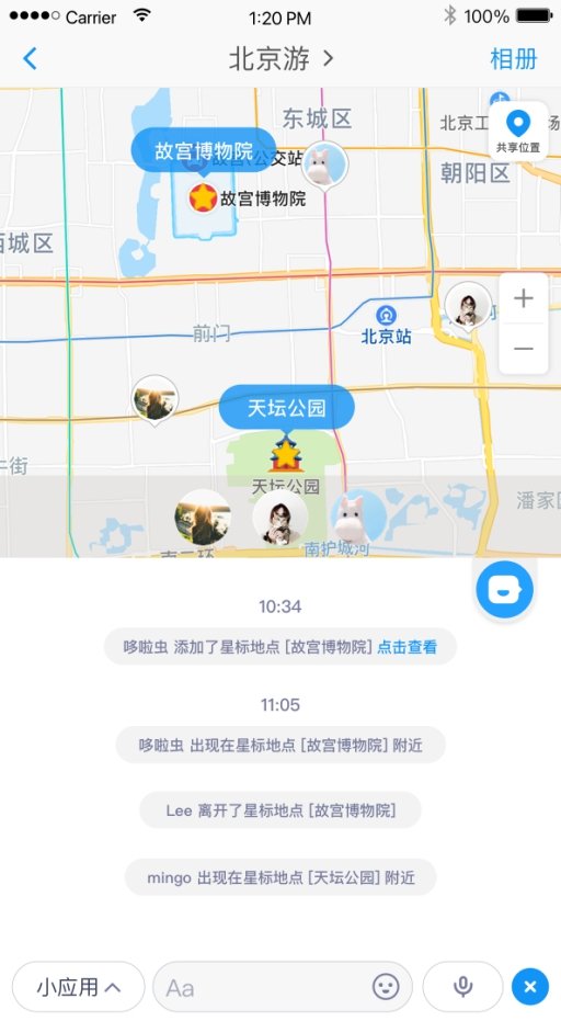如何避免这种尴尬呢?何不尝试一下与你APP的小应用——地图。使用该功能好友之间可以发起位置共享,位置变动还会有信息提醒,让见面变得更加简单。