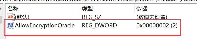 3.然后再最底部文件夹里面 新建 DWORD(32)位的。文件名 “AllowEncryptionOracle” ,值: 2.保存 就可以了。
