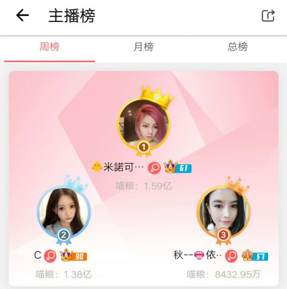 以上就是本周榜单了,小伙伴们如果想了解榜单更多详细内容可打开喵播周榜观看。