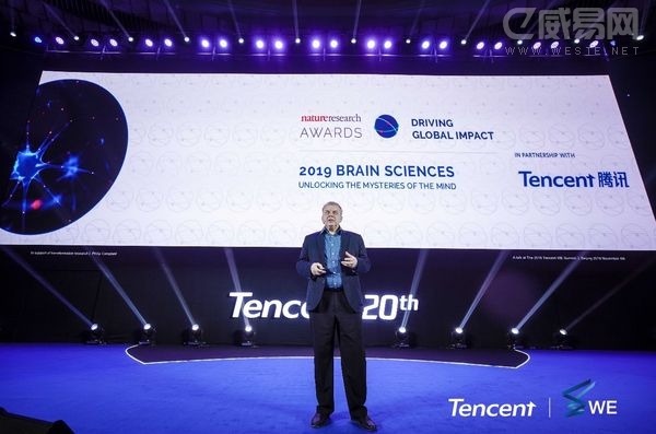 施普林格·自然集团总编辑菲利普·坎贝尔介绍与腾讯合作的“自然科研全球影响力大奖”